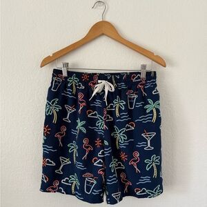 The Neon Lights Classic Swim Trunks by Chubbies in Navy Graphic. Your swim trunks should do more than just survive a day in the water- they should keep up with you. Designed for movement, comfort, and all-day versatility. These lined swim trunks feature: Quick-dry, lightweight fabric that keeps you cool and fresh. Four-way stretch so you can move freely, from beach to bar. Secure zippered back pocket to hold your essentials. Side mesh pockets for fast water drainage. Tough enough for adventure. Comfortable enough to wear all day. Stylish enough to never take off. Best For: Beach days, poolside lounging, vacations & resort wear, water sports & outdoor adventures, everyday summer style. Gently worn with no visible flaws.