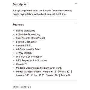 The trunks are mesh-lined for added comfort and support. Don't miss out on these stylish and comfortable swim trunks! They are perfect for any water activity.