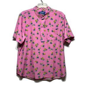 Chubbies Top Button Up Collar Short Sleeve Shirt Pink Pineapple Print Men sz XL