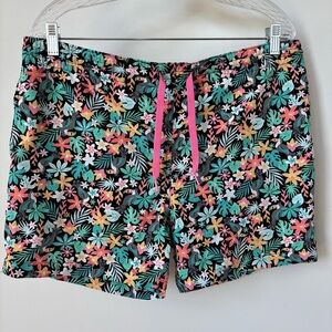5.5” inseam, drawstring elastic waist, liner, pockets, great condition!