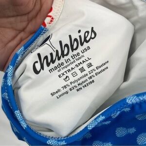 Chubbies Women’s One Piece Swimsuit The Nifty Fifty Blue Red Size XS Tank. Flamingo pineapple. Scoop neckline. Pull on. Polyamide. Lined. Very good preowned condition.