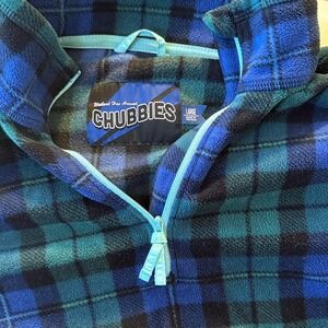 Chubbies plaid quarter zip pullover blue green men's large