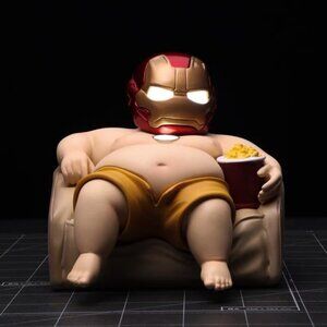 This 11cm (H) × 9.5cm (W) × 0.8kg chubby armored hero figure is the perfect mix of humor and style! Featuring a glossy armored helmet with bright LED light-up eyes (battery-powered, easy to activate), he’s posed lazily on a soft sofa—holding a bucket of "snacks" and showing off his relaxed, laid-back vibe.