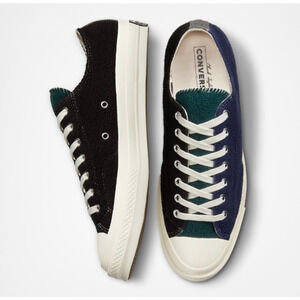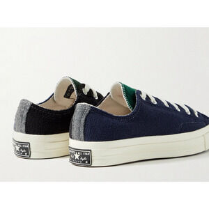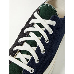 Converse Chuck 70 Beyond Retro Fleece Low-Top Sneakers in men's size 7.5. These unique sneakers are crafted with upcycled fleece fabric, making each pair one-of-a-kind. They blend classic Chuck 70 style with sustainable, recycled materials for a standout eco-friendly look. Comfortable and durable, ideal for everyday wear or sneaker collecting. They're made in limited quantities and have the usual iconic features, including the rubber cap toes and logos at the back. Rubber Sole AND Other Material Authentic Converse Chuck 70 collaboration with Beyond Retro Limited edition design featuring recycled fleece panels Soft fleece upper and classic silhouette Durable rubber sole for traction and longevity Size: Men's US 7.5 ***Comes in a slightly damaged box***