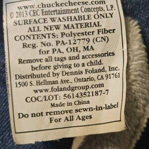 The Chuck E Cheese 2013 Birthday Rock Star Plush Pizza Mascot Mouse is a colorful and collectible advertising item representing the Chuck E Cheese brand. Made in China, this original plush toy was created in 2013 as a themed item for restaurants and fast food promotions. Perfect for collectors or fans of Chuck E Cheese, this unique plush mascot mouse is sure to bring a touch of nostalgia and fun to any collection.