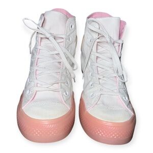 Classic Converse high-tops in white with pink interior. Ideal for everyday style.
