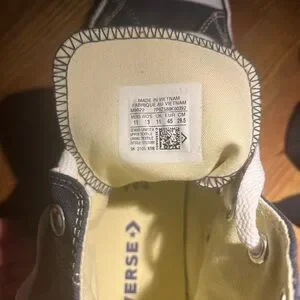 Classic dark blue high-tops with white laces. Features Converse logo patch. Size 11 Mens, 13 Women's.