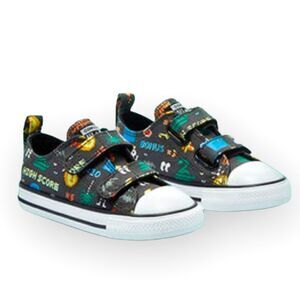 Tags: sneakers streetwear activewear gaming gamer games play fun funny cool colorful round toe classic player one player two retro shoes footwear unisex boys girls infant toddler kids hook and loop Deadstock unique one of a kind rare out of stock