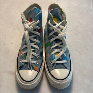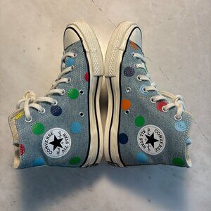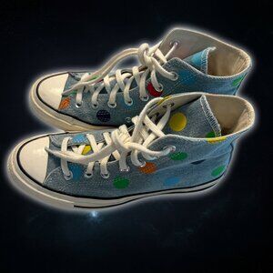 Chuck Taylor Converse Light Blue Polka Dot High Top Shoes Unisex Women's Size 7