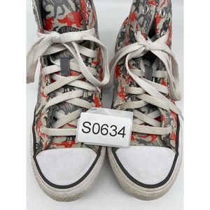 Chuck Taylor Converse Sneakers Junior Sz 5 High Top Dinosaur Print Gray /Red