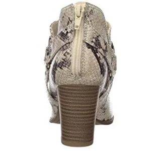 The faux-leather upper of the Fergalicious™ Chucky boots boast a snakeskin print that's perfectly on trend. Round-toe silhouette with harness strap at vamp and zipper closure at back.