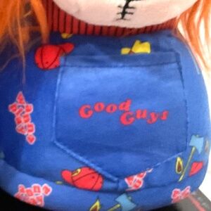 Step into these plush Chucky “Good Guys” slippers, inspired by the classic Child’s Play horror films. Features soft fuzzy orange hair, stitched face detailing, and “Good Guys” printed overalls. Perfect for horror fans, collectors, or Halloween lounging!