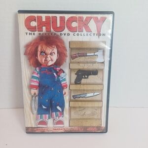 Chucky The Killer DVD Collection with vibrant cover art. Features iconic horror character in blue overalls and colorful striped shirt.