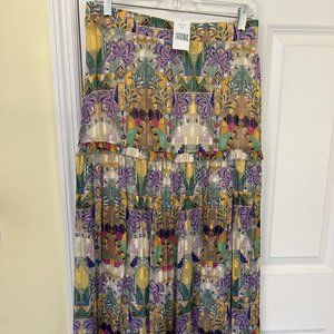 Multicolour Inka print maxi tiered skirt from Chufy featuring an all-over print, a tiered design, a high rise and a ruffle trimming.