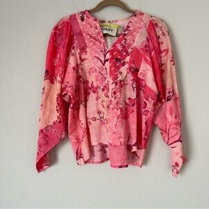 Italian fashion in the 70's had a lot of geometry. Large scale prints where the color was the protagonist. The Apulia print is a tribute to this. With a Bohemian feel and made from our Cotton-Silk Voile, it's one of the brand's iconic blouses. The Gia Top was designed with puffed shoulders and pleated details that emphasise the neckline. With contrast color embroidery to enhance chest and cuffs. Tuck it into matching shorts.