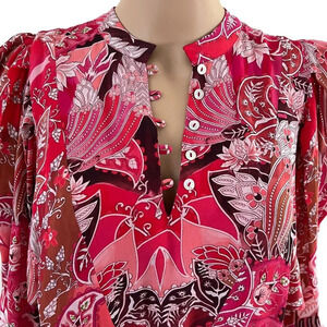 Elegant and versatile Maiah Dress is cut from Crepe de Chine in a vibrant abstract floral print. Long puffed sleeves. The wide maxi hem creates the perfect volume to feel chic.
