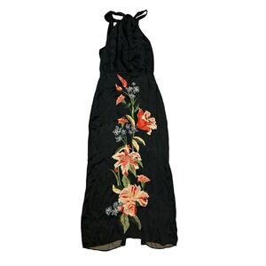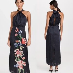 Chufy Nika Maxi Dress Grey/Blue Floral Flowers Halter Slit S Flowy Anthropologie