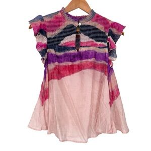 Chufy Northern Lights Kaia Ivory Watercolor Top sz Small Ruffle Tie Dye Stripes