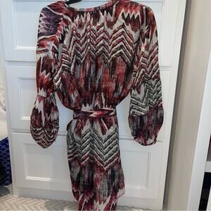 From the Dolce Vita Collection. This button-front minidress is finished with full blouson sleeves and contrast piping.