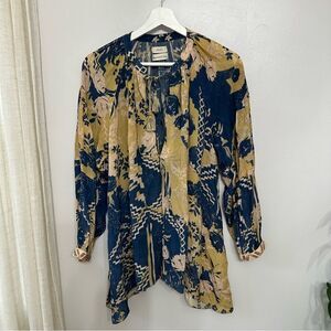 The Chufy Tyna Blouse is crafted from a vibrant printed fabric. This blouse is designed for a loose fit and features blouson sleeves and ties to fasten the collar.