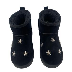 Chulis girls boots, girls black ankle boots, star studded boots, faux fur lined boots, girls size 13 boots, embellished boots for girls, faux suede boots, girls fall boots, shaft height 3.5 boots, platform boots for girls, ugg classic mini