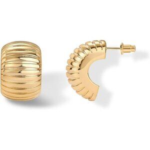 💫 Modern Statement Design: A contemporary twist on the classic hoop. Textured detailing adds a modern edge while the chunky 14K yellow gold plating creates a warm, radiant glow. Size: 25mm x 17mm.