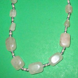 Chunky 18" Beaded Necklace Rose Quartz Jewelry Pink Silver Beads