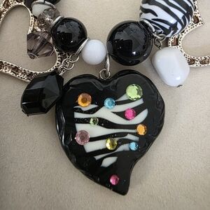 Black white unique eye catching statement heart zebra print casual dressy party stretch