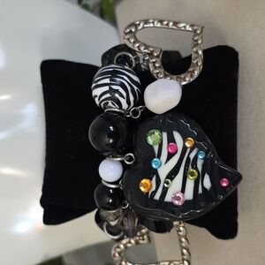 Chunky And Bold Acrylic Bead Zebra Print Charm Bracelet