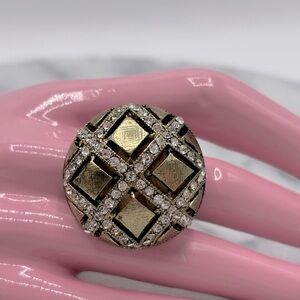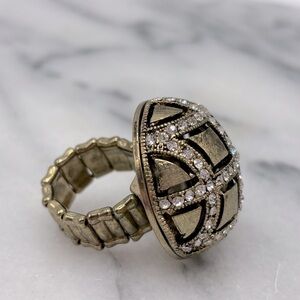 Chunky Round Antique Gold Tone Crystal Costume Ring with Stretch Band