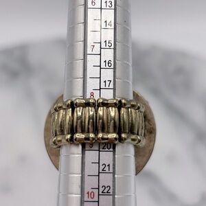Chunky Antique Gold Tone Round Crystal Costume Ring with Stretch Band