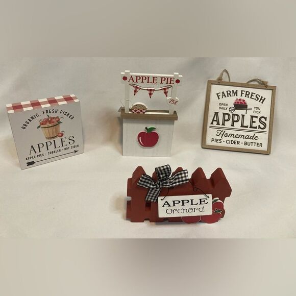 Chunky Apple Pie Cider Farm Fresh Sign Apple Orchard Wooden Kitchen Decor 4pc