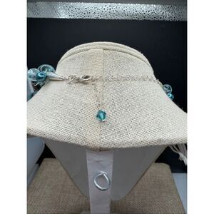 Make a bold statement with this beautiful aqua and teal multi-strand necklace. Features faceted glass beads, iridescent abalone-style shell discs, turquoise-style accents, and teal faux pearls woven into a silver-tone crochet base. Finished with a lobster clasp and extender chain with a sparkling aqua crystal drop.