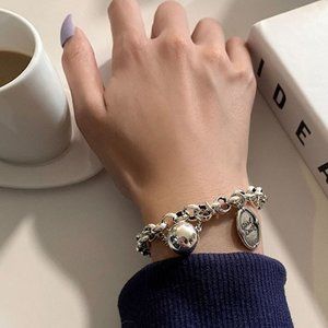 Chunky Ball Bracelet, Link Chain Charms Bracelet, Bracelets for Women Silver