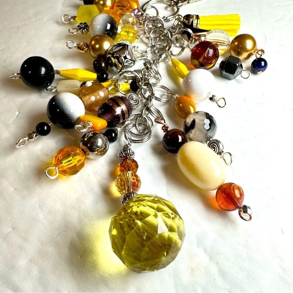 • Bohemian flair comes from a mixed variety of materials that may include vintage to now beads: metallic, glass, ceramic, acrylic, natural stones, mixed wires, add to the beauty of this eclectic original art dangle bag charm.