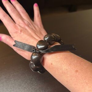 Stylish chunky bracelet with glossy black beads. Perfect for any occasion. Hawaiian bracelet. Never worn. Size 6.5”, elastic.