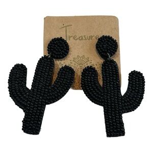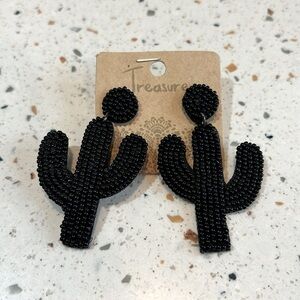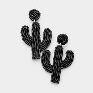 Chunky Black Beaded Desert Cactus 🌵 Dangle Earrings