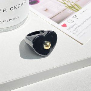 Chunky black and gold heart shaped statement ring. Size 6.5.
