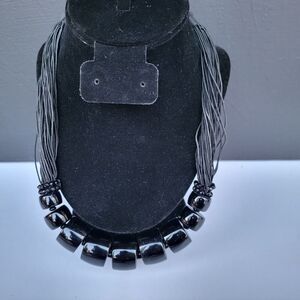 Chunky Black Mutlistrand Beaded Statement Necklace 23"