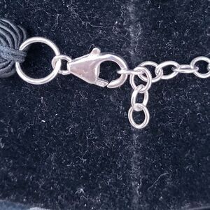 Materials: graduated black stone beads, black multistranded cord, silver metal 925 Length: 23" Clasp: lobster Signed? "NF 925" Excellent vintage condition