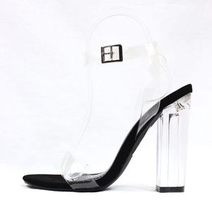 Strappy Chunky Block Chunky Clear Lucite Perspex Heel Sandals
