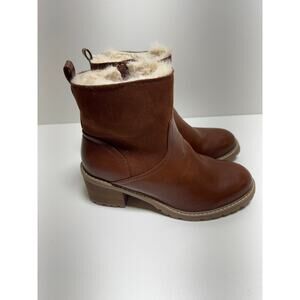 Chunky Block Heel Women’s Faux Fur Lined Ankle Boots Sz 9.5 Camel Brown