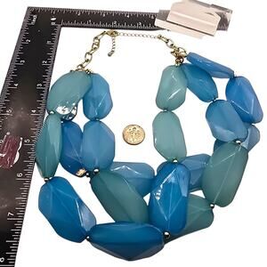Chunky Blue Beaded Statement Necklace Faceted Acrylic Retro Gold Tone 22"