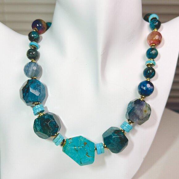 Chunky Blue Gemstone Statement Necklace – Turquoise & Blue Agate