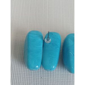 Chunky Blue Marbled Swirl Acrylic Post Backs Statement Style Fashion Earrings