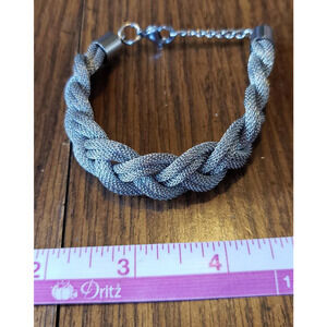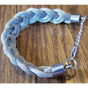 Chunky Braid Mesh Silver Tone Adjustable Fashion Bracelet