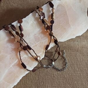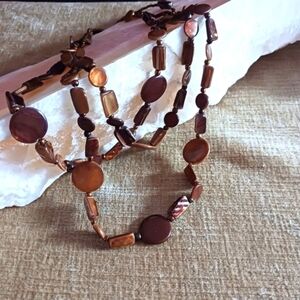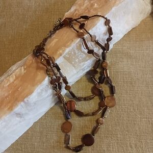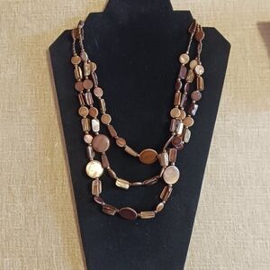 Brown Acrylic Three Strand Multi Sized Beaded Chunky Necklace