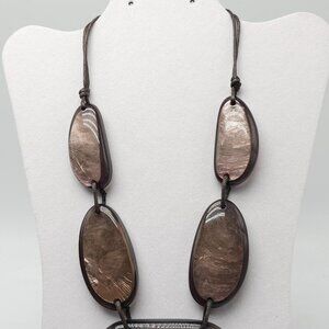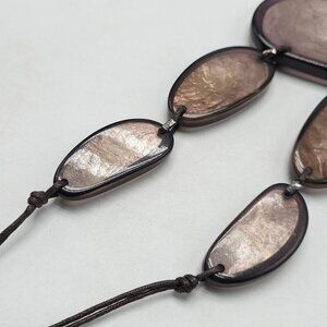 A bold accessory featuring earthy brown resin elements, beautifully arranged for a striking visual appeal. Adjustable cord ensures a customizable fit.