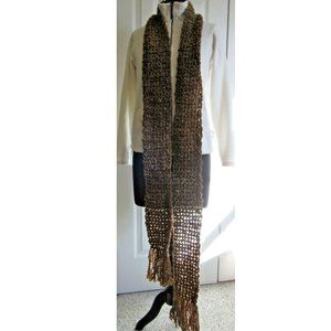 Chunky Brown Scarf 112x5 Stripe Men or Women Handmade Crochet Knit Winter NWT