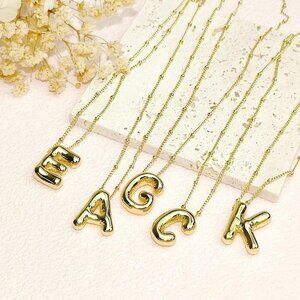 Chunky Bubble Gold Initial Letter Necklace for Women Balloon Statement Dainty Al